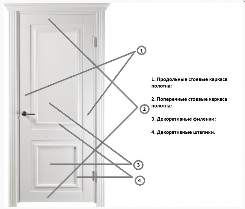 Полотно филенчатых дверей состоит из двух элементов: рамы и филенок. Количество филенок может находиться в пределах от 2 до 10-12 вставок. Их задача: