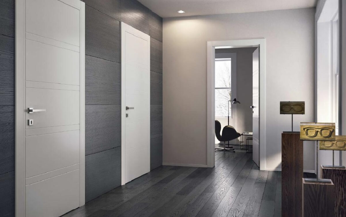 Лучше чтобы во всех комнатах внешний вид межкомнатных дверей был одинаков. Так будет выдерживаться общая линия в оформлении. Важно чтобы отделка комнат и дверей были схожи. Это касается как используемых материалов, так и цветовых решений. Оптимально считается вариант, когда оконные рамы и двери одного оттенка.