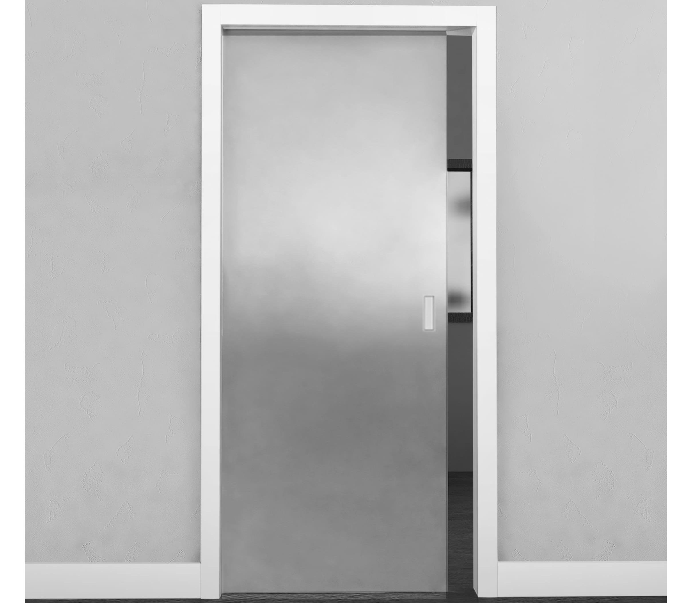 - Открытый – более простой вариант, когда механизм монтируется снаружи вдоль стены, т.е. дверное полотно не уходит в перегородку, а движется параллельно ей.