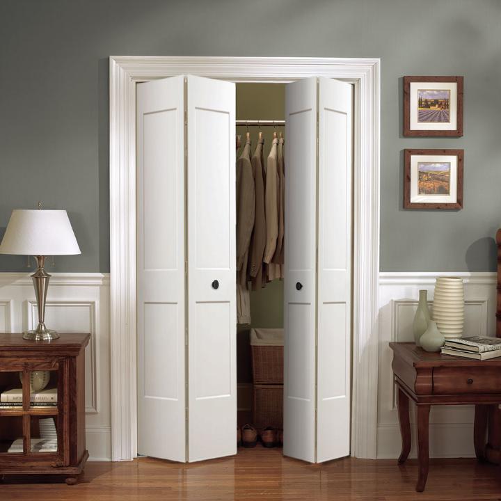 Варианты складных изделий можно подразделить в зависимости от параметров полотен, они могут быть: симметричными и ассиметричными. У первой группы двери одного размера, а у второй одна дверь больше другой. Ассиметричные конструкции позволяют выиграть дополнительное пространство, так как складывание осуществляется в сторону меньшей двери, соответственно забирающей меньшую площадь.
