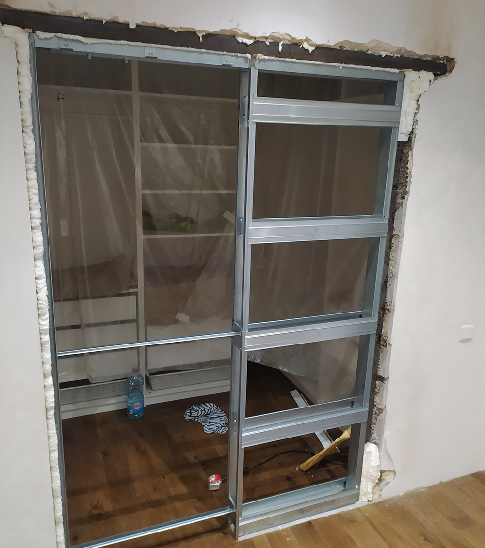 2. После этого нужно очистить проем от оставшегося строительного мусора, при необходимости подогнать его под размеры короба.